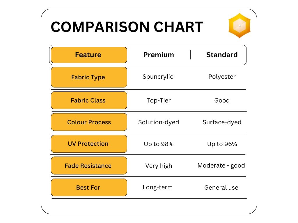 When choosing between premium and standard parasol fabrics, consider the following: